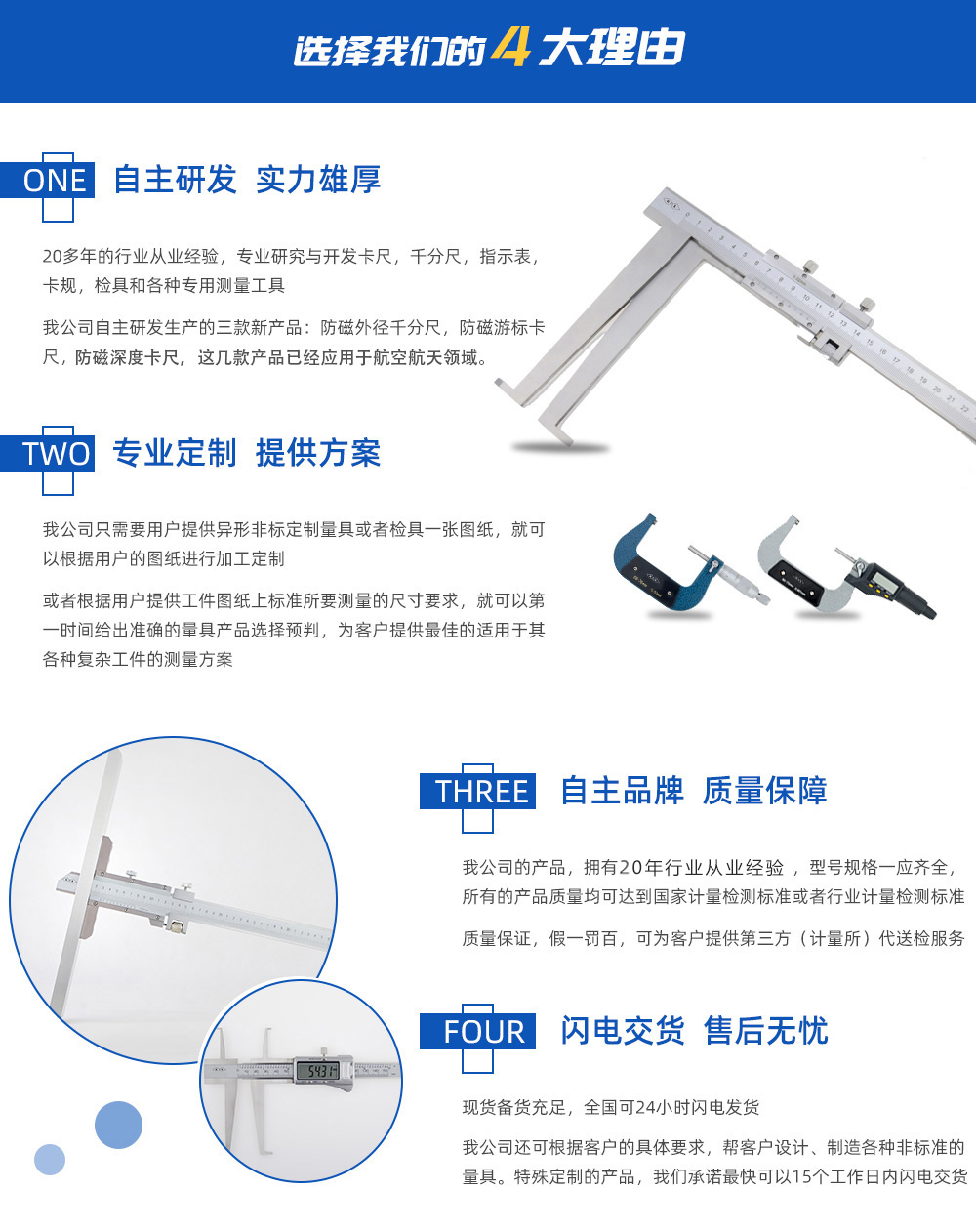 天津桂量量具刃具有限公司,擁有20年的行業(yè)從業(yè)經驗,主要生產游標卡尺卡尺,數顯卡尺,帶表卡尺,各種千分尺,百分表,內徑百分表,高度游標卡尺,深度卡尺,卡規(guī),檢具和各種測量工具,是一家集設計生產,銷售為一體的企業(yè)。 我公司開發(fā)生產了三款新產品:防磁外徑千分尺,防磁游標卡尺,防磁深度卡尺,這幾…